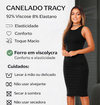 Vestido midi confeccionado em tecido canelado, com decote halter fechado que traz um visual moderno e elegante. A modelagem ajustada valoriza a silhueta com conforto, enquanto o caimento reto garante versatilidade para diversas ocasiões. Uma peça prática, estilosa e fácil de combinar, ideal para produções do dia à noite.