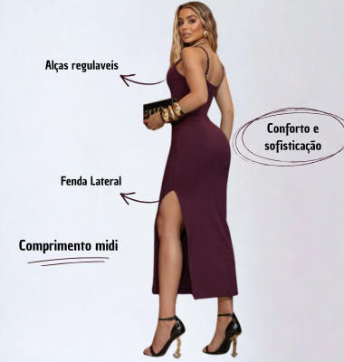 Um vestido versátil, elegante e poderoso perfeito para eventos, jantares ou ocasiões especiais onde você quer estar impecável.